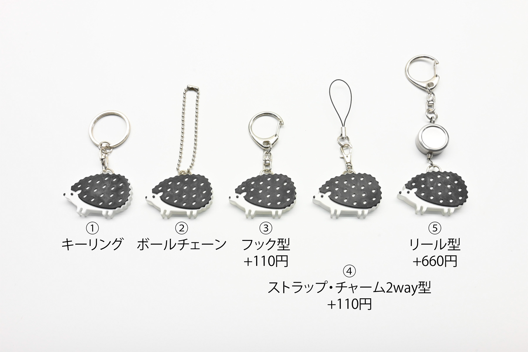 キーホルダーは以下の5タイプからお選びいただけます。